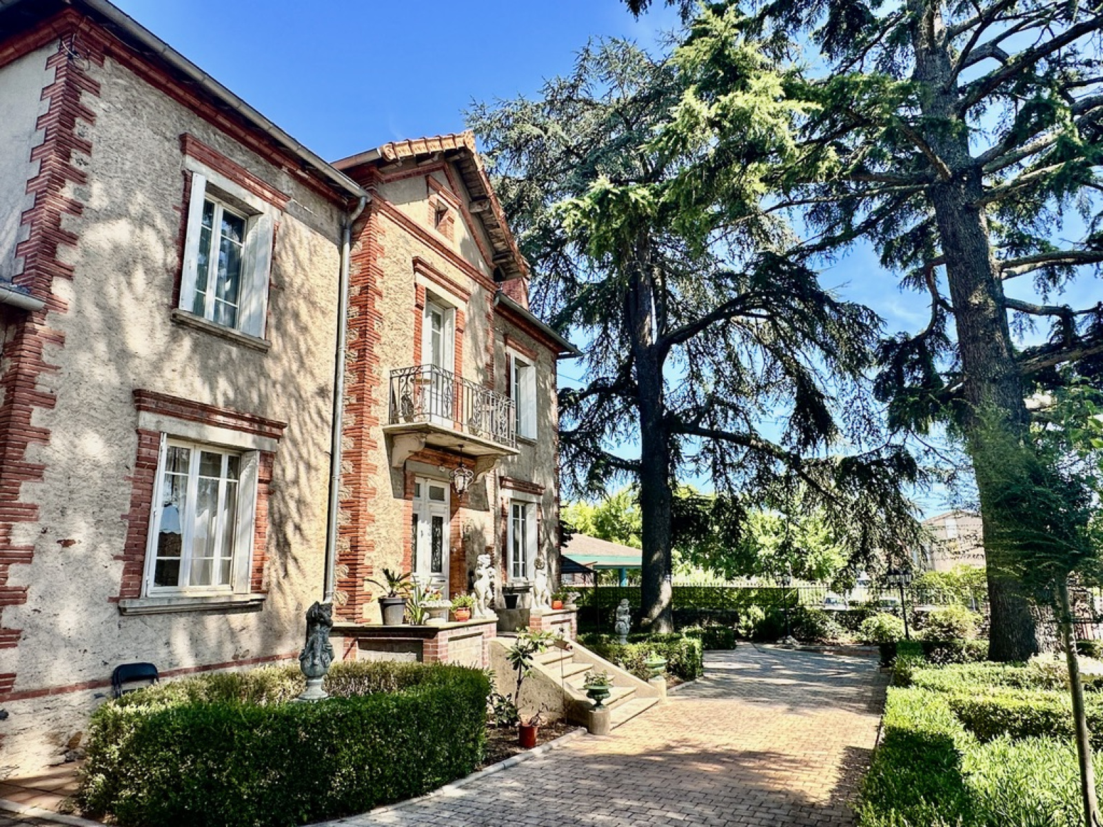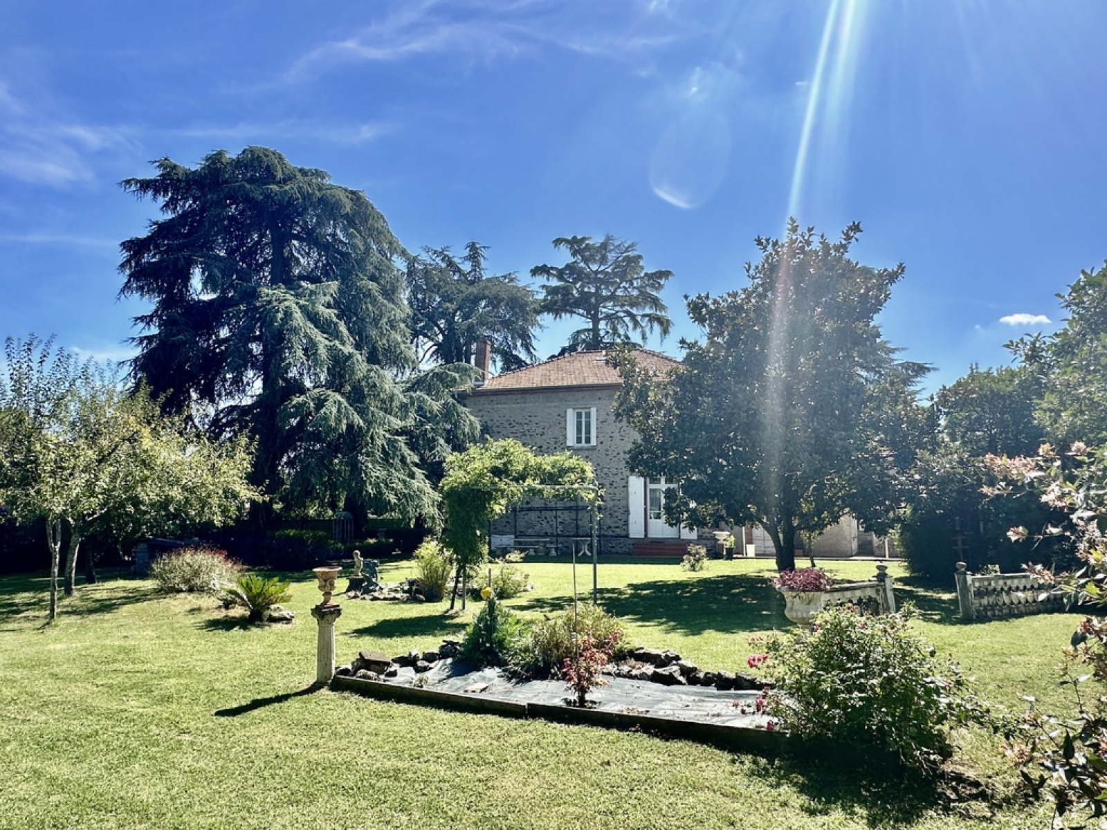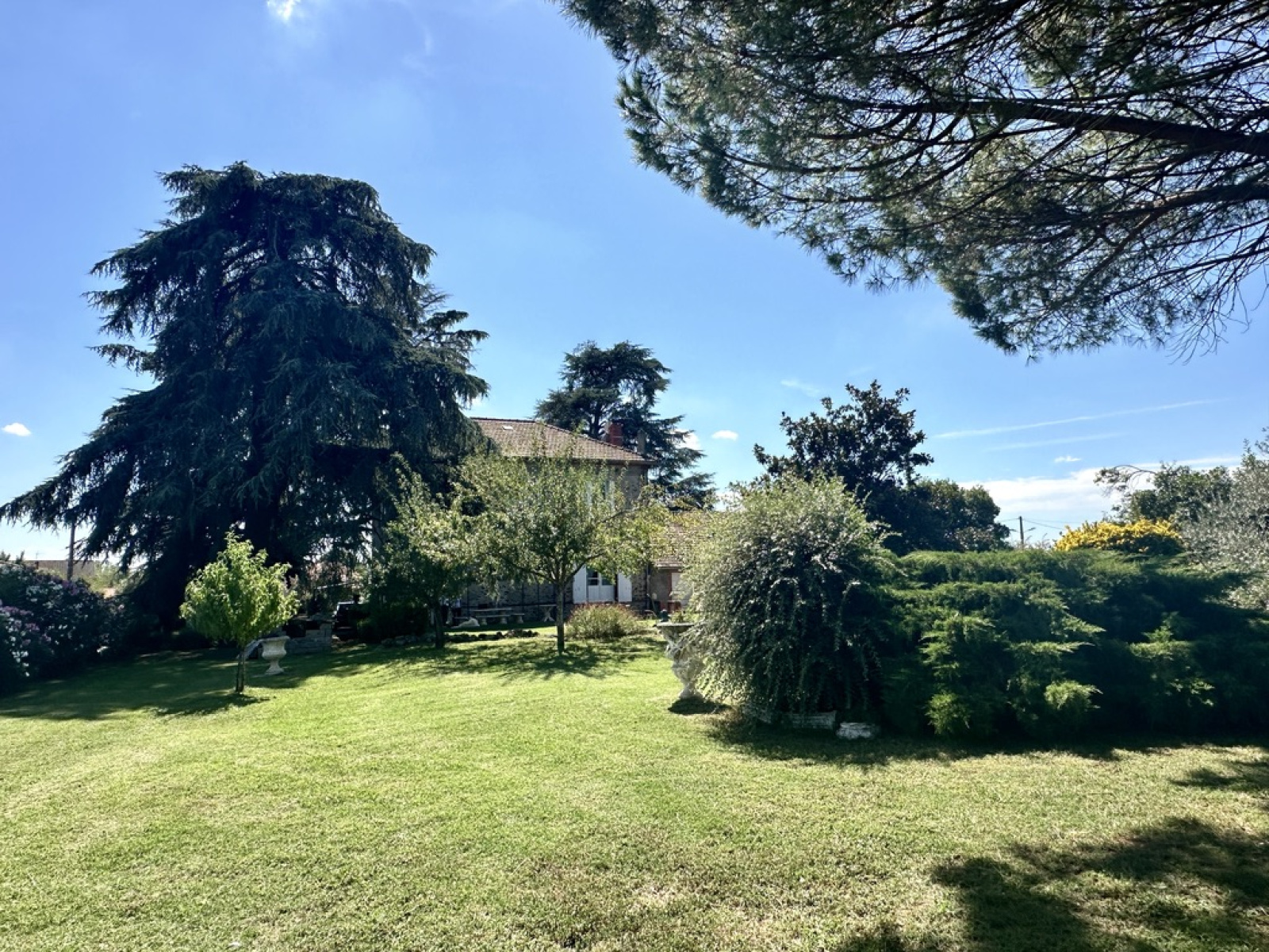 Un parc arboré et entièrement clos de 2108 m2 avec deux puits (arrosage intégré) et de très beaux arbres centenaires, accès à pieds aux commerces, écoles et bus.