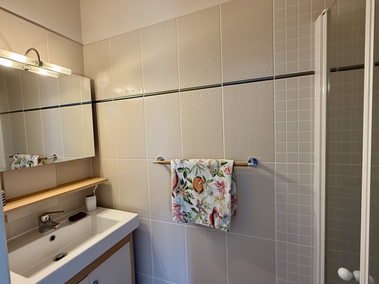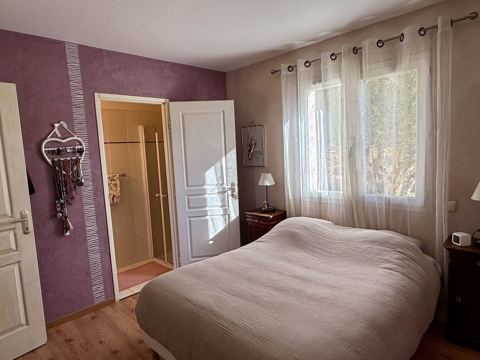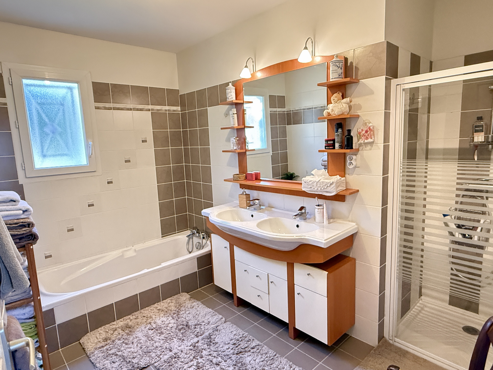 3 chambres lumineuses dont une avec sa salle d'eau ; une grande salle de bains avec douche et baignoire pour les autres chambres.
