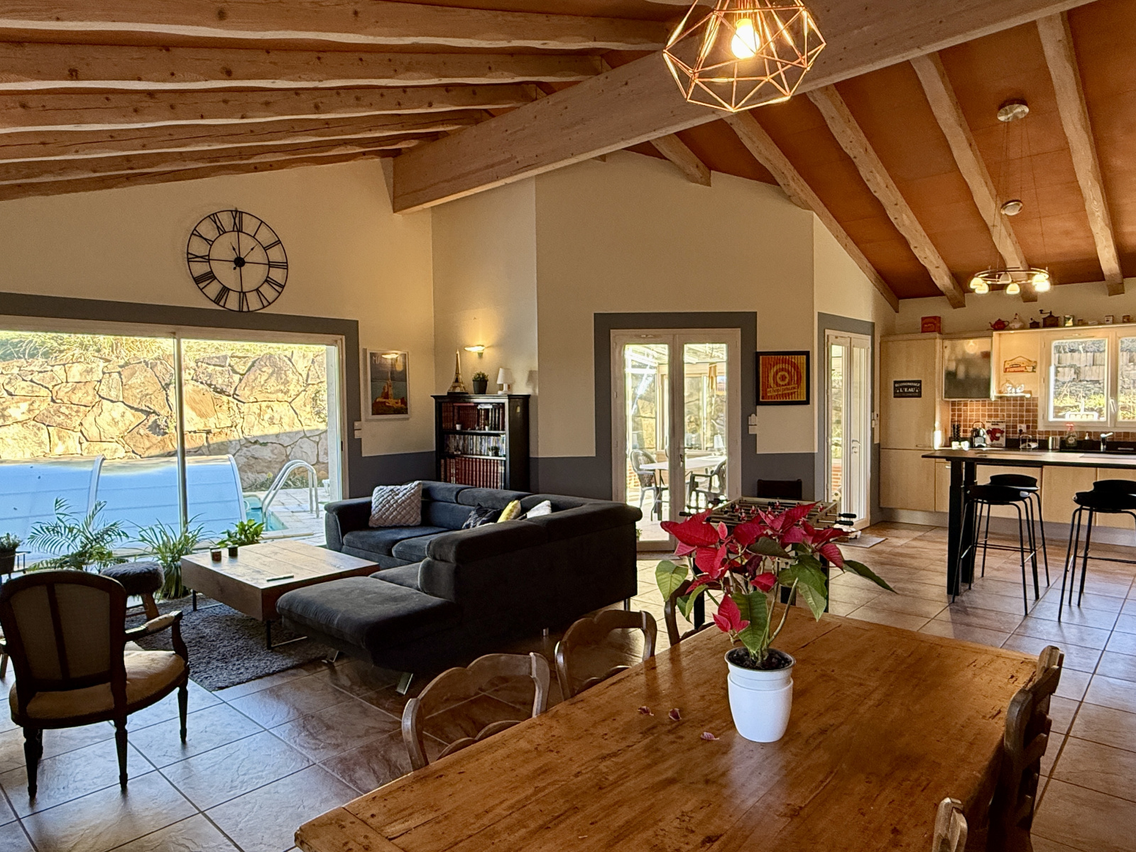 143 m2 habitables, superbe espace de vie de 57 m2 avec belle hauteur sous plafond et cuisine américaine équipée, donnant accès à
